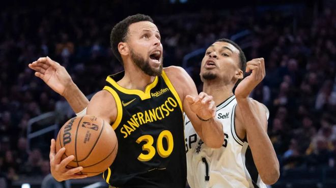 然而,哈登的“封神之夜”,最终被库里的“纪录之夜”盖过光芒。在勇士与马刺的1分险战中,勇士以109-108击败马刺,库里交出26投16中、三分球17中9、49分4篮板2助攻2抢断的恐怖数据,更一举创下3项纪录:其一,单场9记三分次数来到47次,比第2-6位加起来都多;其二,49分是库里职业生涯面对马刺的单场最高分,打破了此前由他保持的45分纪录;其三,连续两场比赛得到45+,成为NBA历史达成这一数据最老的控卫。第四,此役是库里第23次以80+%真实命中率砍下45+的比赛,比第二名的哈登多出13次。